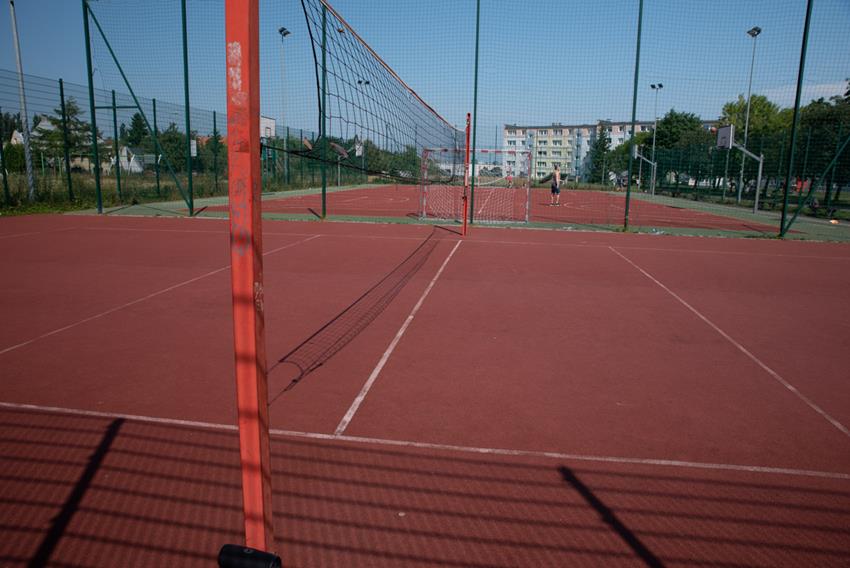 2 boiska o nawierzchni poliuretanowej (do piłki siatkowej i do piłki ręcznej (w poprzek 2 boiska koszykówki)