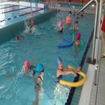 Podczas tygodniowych półkolonii dzieci dwukrotnie odwiedziły basen na gdańskich Stogach, gdzie nie zabrakło okazji do nauki pływania. W bezpiecznym i owocnym pobycie na pływalni uczestnikom pomagali nauczyciele GZSiSS. Po głównych zajęciach basenowych za każdym razem przychodził czas na zabawę. Wtedy to w rusz szły wszelkie możliwe przybory: koła, materace, piłki. Na strudzonych czekała porcja relaksu w postaci jacuzzi i kaskad wodnych.