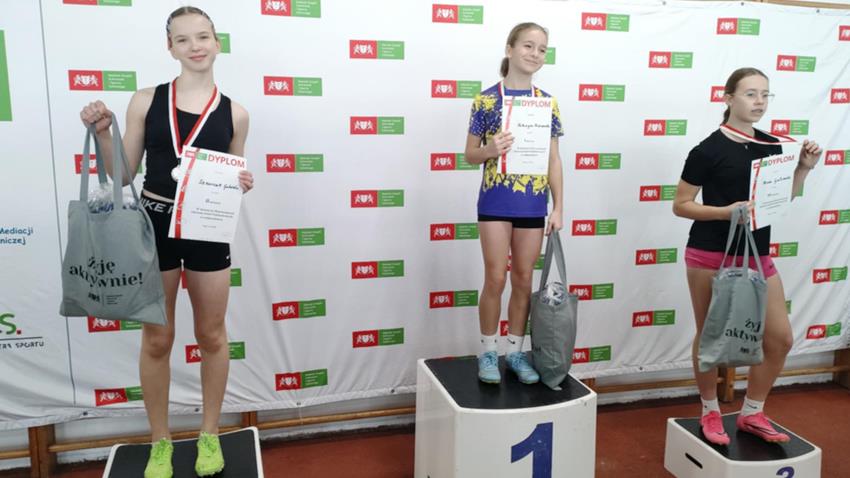 60m dziewcząt rocznik 2014 i młodsze: Kobus Mia 1m, Zaremba Nadia 2m, Haranin Michalina 3m,