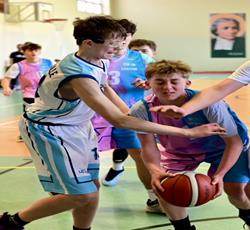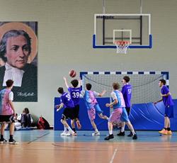 Tegoroczny koszykarski turniej finałowy chłopców w Igrzyskach Młodzieży Szkolnej rozegrano w Szkole Podstawowej im. Św. Jana de La Salle.