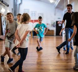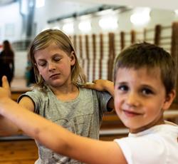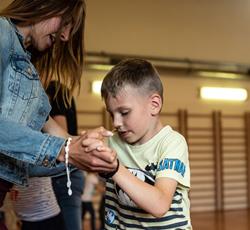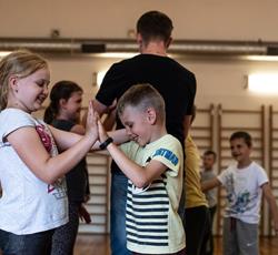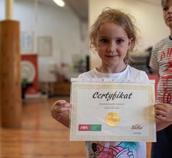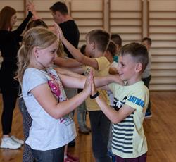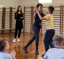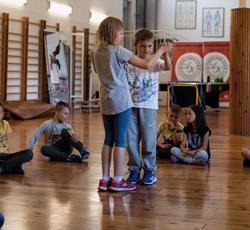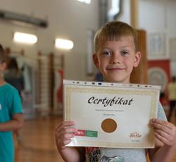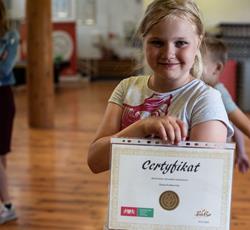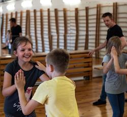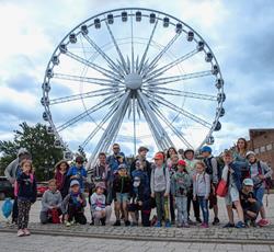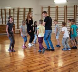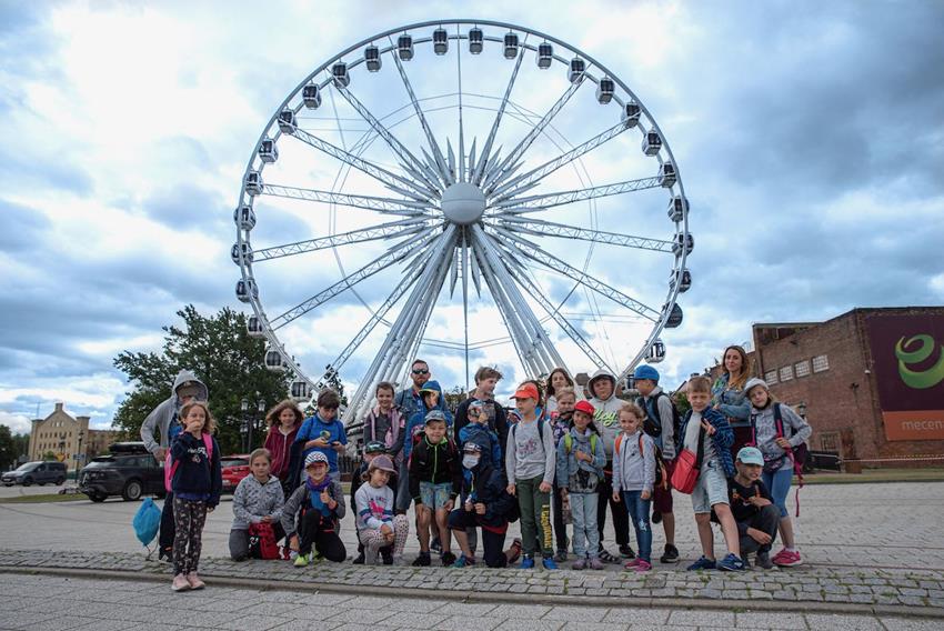 Od przejażdżki na kole Amber Sky rozpoczął się 3 dzień półkolonii. Wcześnie rano podopieczni GZSiSS wyruszyli do Gdańska, aby nacieszyć oczy widokami Głównego Miasta. Przy okazji nie obyło się bez obaw i pewnej dawki strachu przy wsiadaniu do kabin Amber Sky i wznoszeniu się, ale widok z najwyższego miejsca wynagrodził wszelkie niedogodności. Zwiedzanie kolejnych ważnych dla Gdańszczan miejsc zlokalizowanych na Starym Mieście to kolejny punkt tej środowej wycieczki. Żuraw, Neptun, Zielona Brama, Dwór Artusa, Złota Brama, to tylko niektóre elementy gdańskiej architektury odwiedzone tego dnia przez najmłodszych. Duży zainteresowaniem u kolonistów cieszył się napis „Gdańsk” zlokalizowany przy Motławie. Dzieci wykazały się dużą pomysłowością w integrowaniu się literami tworzącymi napis. Po powrocie do siedziby GZSiSS na uczestników czekała kolejna atrakcja - warsztaty taneczne przeprowadzone przez wykwalifikowanego instruktora. Na pierwszy ogień poszła Samba. Początki oczywiście stanowiły pewien problem dla młodych tancerzy, ale już po półgodzinnym treningu każdy z uczestników na tyle opanował kroki, że dość swobodnie tańczono nie tylko samodzielnie, ale również w parach. Na koniec każdy uczestnik otrzymał certyfikat o ukończeniu tego krótkiego tanecznego kursu.